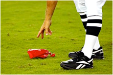 In football, when the referee throws a flag it tells everyone that a penalty has been committed.